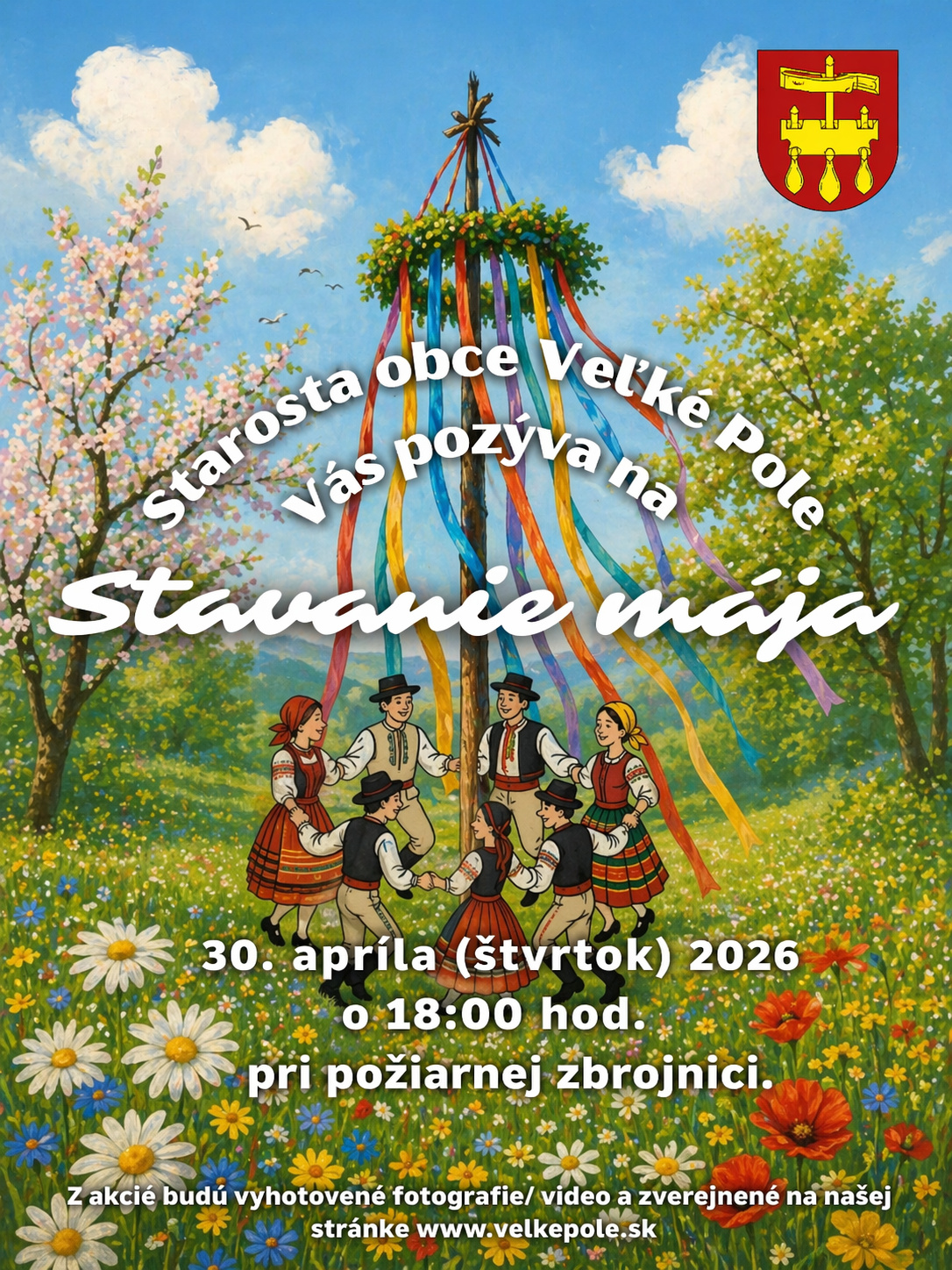 Starosta obce Vás srdečne pozýva na stavanie Mája, ktoré sa uskutoční 30.apríla.2026 štvrtok o 18.00 hod